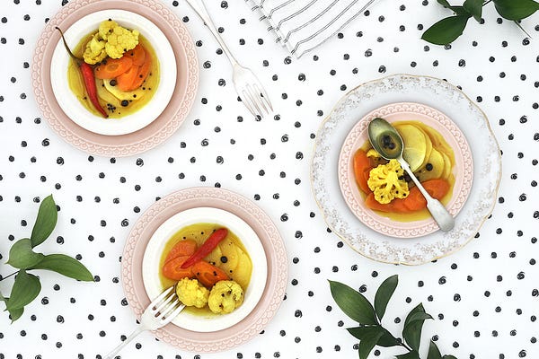Encurtido picante de nabo, zanahoria y coliflor