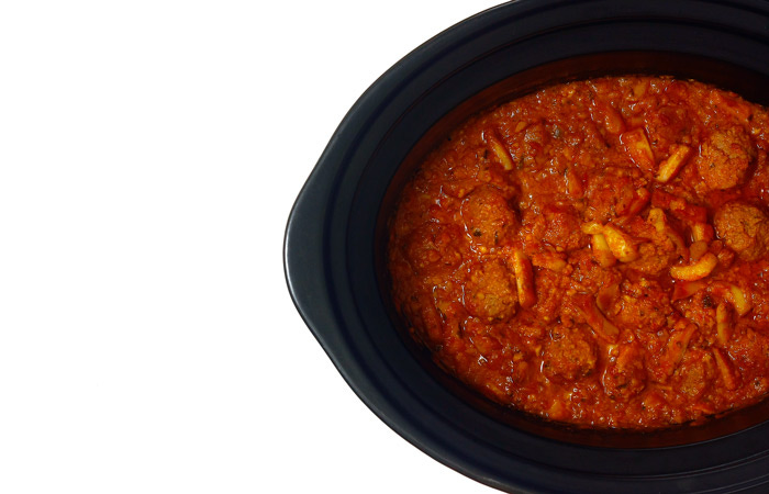 Mueve el slow cooker para que se mezcle todo el contenido y cocina entre 6 y 7 horas en BAJA. Comprueba el punto de la carne y la sepia pasadas 6 horas. Las albóndigas y la sepia deben estar tiernas. Si la sepia aun está dura, cocina durante una hora más.