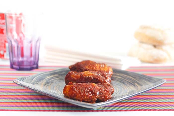 Mientras el Anchor Bar y el John Young's Wings 'n Things, los reyes de las alitas, se citan a la salida para batirse en duelo, yo llevo un rato limpiando el teclado de salsa barbacoa, ya perdonarás, pero no puedo parar ni para escribir la receta. La carne tierna y suave de las alitas barbacoa se desprende de los huesos, la salsa acompaña con garbo. Tienes que probarlas.