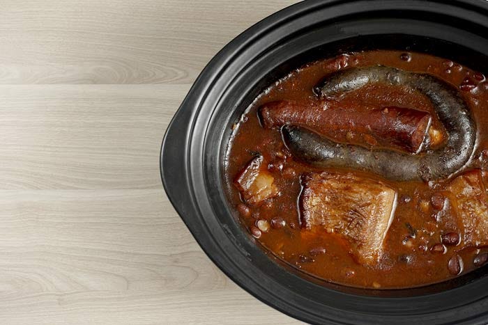 Deja que se temple un poco y vuelca las alubias y su agua en el slow cooker.