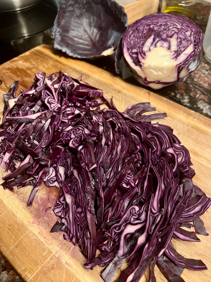 Corta la lombarda en juliana fina.