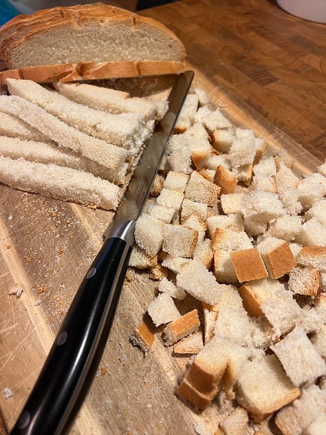 240 g de pan blanco de miga prieta (candeal) reposado durante 3 días