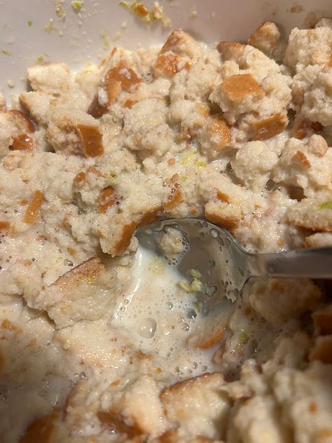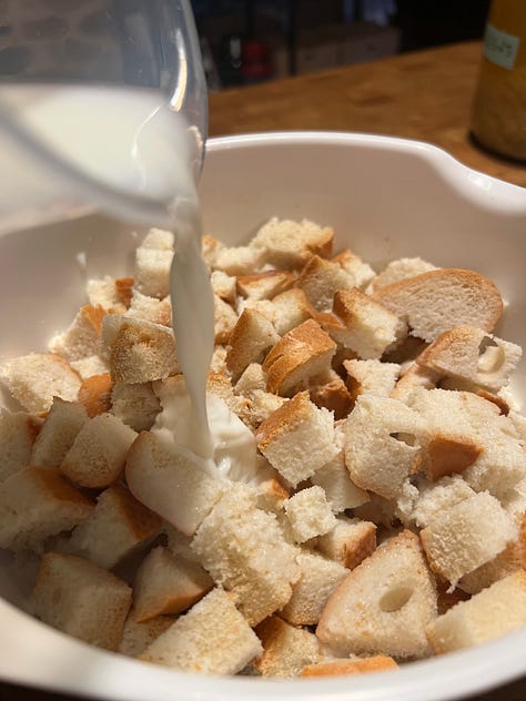 Remoja el pan en un bol con la leche y deja que se empape por completo.