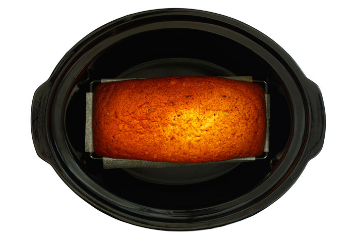 Precalienta el slow cooker en ALTA mientras preparas la masa o durante 1 hora antes de cocinar el bizcocho.