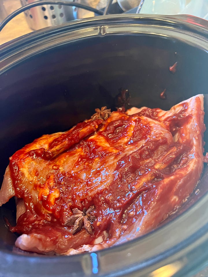 El proceso de cocción trae sorpresas. La carne se cocina con los ingredientes de la salsa sin añadir ni pizca de agua. Cuando la costilla está cocinada viene el susto, porque aparece una gran cantidad de jugo.
