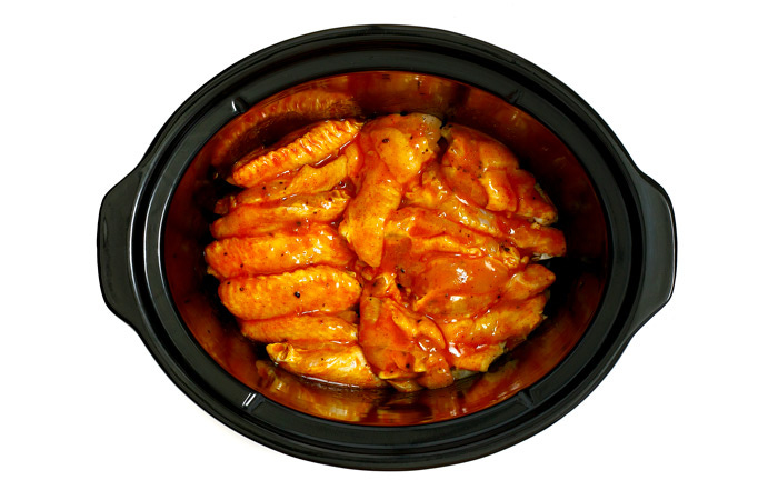 Coloca las alitas en el slow cooker solapadas unas con otras para que se hagan por igual.