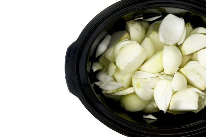 De allí me vine con la idea de hacer un caldo de cebolla en crock pot cuando, al preguntar cómo hacían esa maravilla, me contestaron que simplemente se trataba de cebolla, agua y muchas horas de cocción. A veces lo más simple es lo mejor, y en este caso, no hace falta más para obtener un extracto de cebolla puro.