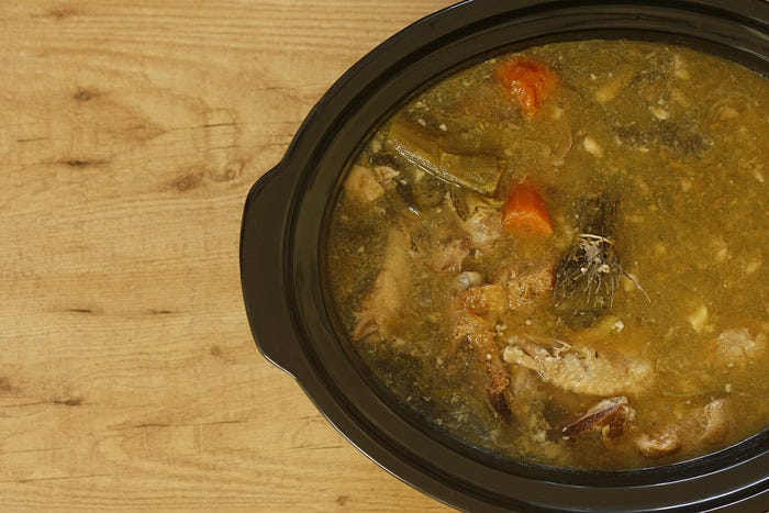 Cubre con agua fría y cocina durante 12 horas (para un caldo claro) o 24 horas (para un caldo de sabor concentrado) en BAJA.