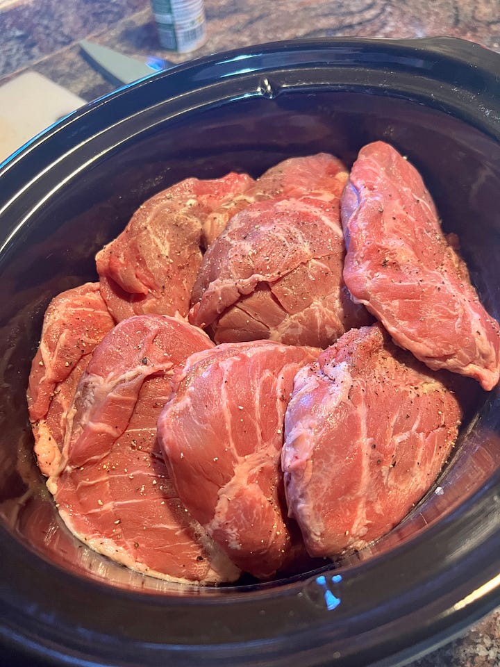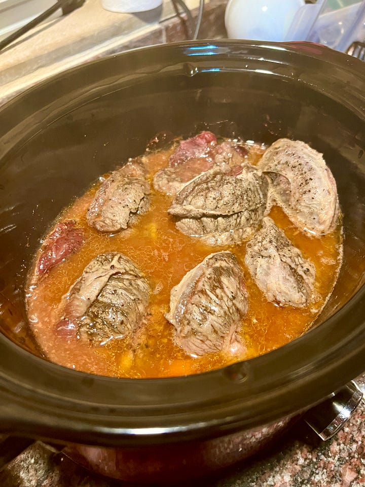 Salpimienta las carrilleras por los dos lados y ponlas en el slow cooker encima del resto de ingredientes.