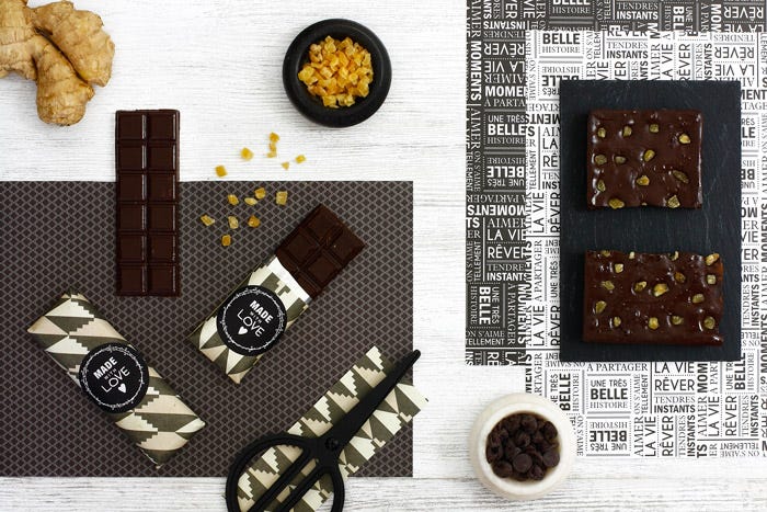 Las instrucciones para hacer la tableta pueden servir para otras frutas confitadas, como la naranja, la mandarina, la papaya o el mango. La combinación del chocolate con el picante del jengibre confitado es muy curiosa y atractiva. No es un producto fácil de encontrar pero, si lo ves en algún comercio, no lo dejes escapar y haz esta tableta, ¡merecerá la pena!