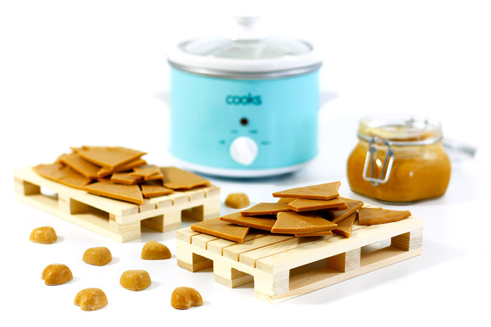 El comportamiento de este chocolate es muy distinto al del chocolate auténtico. Es muy sensible a la temperatura y necesita un ligero reposo en frío para endurecerse. El slow cooker permite simplificar el proceso para hacer chocolate rubio sin necesidad de utilizar el horno ni estar demasiado pendiente de la elaboración, tal y como explica David Lebovitz en este artículo.