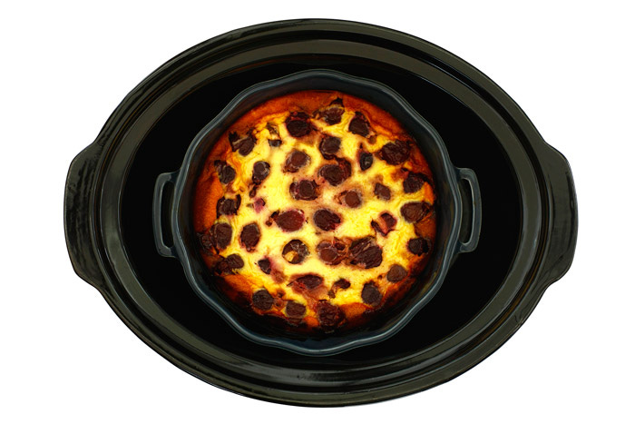 Esta receta de clafoutis de cerezas está pensada para una molde redondo de unos 20cm. Recuerda que la Crock Pot tiene sus limitaciones en cuanto a tamaño y que debes buscar moldes que se adapten a la capacidad de tu slow cooker.
