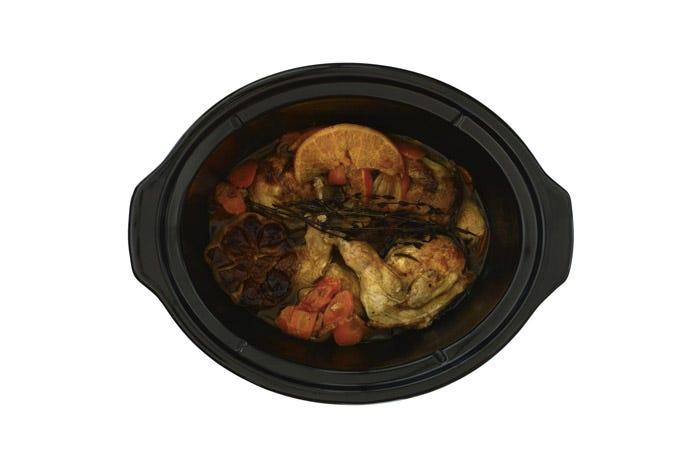 Apaga el slow cooker y deja que se enfríen dentro del recipiente sin extraerlo de la carcasa.