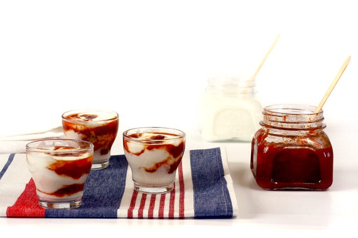 Pasa la compota a un recipiente y sirve como acompañamiento de yogur, natillas o tartas.