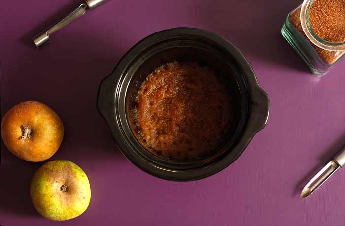 Pon las manzanas, el azúcar y el limón en la olla lenta, tapa y programa 3 horas en ALTA.