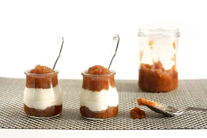 Esta compota de manzana se puede tomar tal cual de postre o combinando con yogur natural o griego, natillas o untando en tostadas de pan.