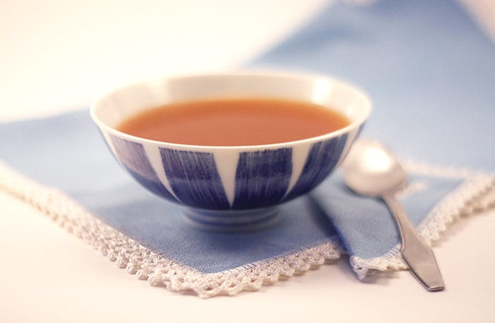 Puedes servir el consomé caliente con una guarnición de carne de ave picada, verduras cortadas en brunoise y blanqueadas o sémola fina.