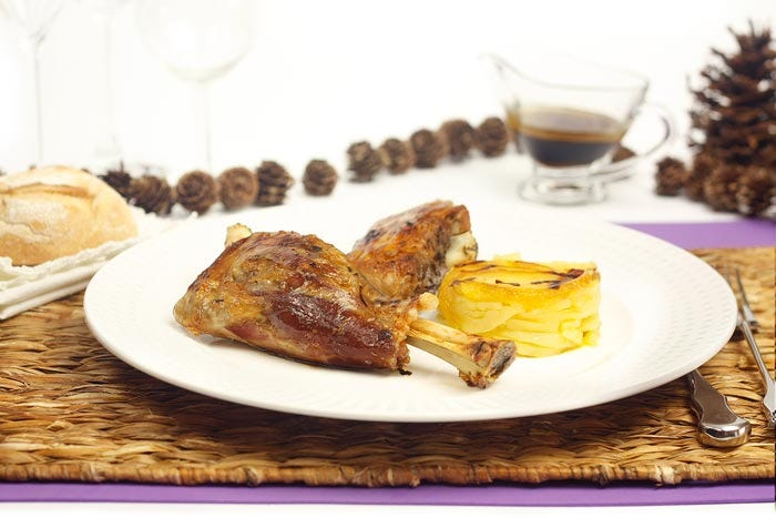 Pide en la carnicería que te troceen las paletillas de cordero para asar.
