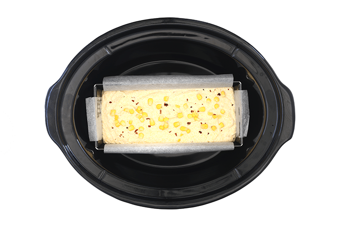 Cocina durante 2 horas en ALTA o hasta que el cornbread se dore ligeramente y, al traspasar la masa con una brocheta, esta salga limpia.