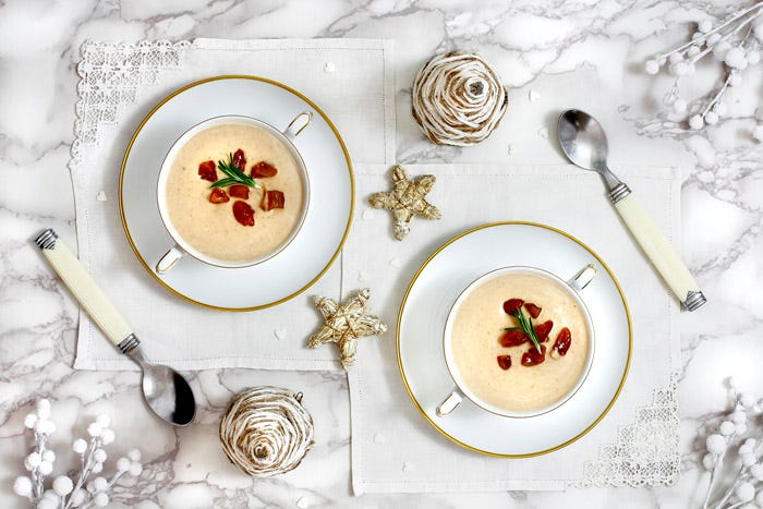 Hoy te traigo una propuesta que te hará quedar muy bien durante todo el otoño e invierno, pero sobre todo, será un buen entrante de cuchara para las comidas de Navidad. Si en tu familia sois de empezar la Nochebuena con un cuchareo fino, esta crema de castañas con orejones no va a desentonar para nada.