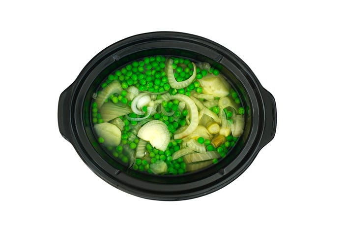 Esta crema de hinojo y guisantes en slow cooker es delicada por partida doble, en sabor y en textura, y se puede presentar en el plato al estilo de los restaurantes estrellados. Te cuento cómo. Si puedes dedicarle un poco más de tiempo a este entrante, cocina algunas hortalizas al vapor o en salteado, dejándolas al dente.