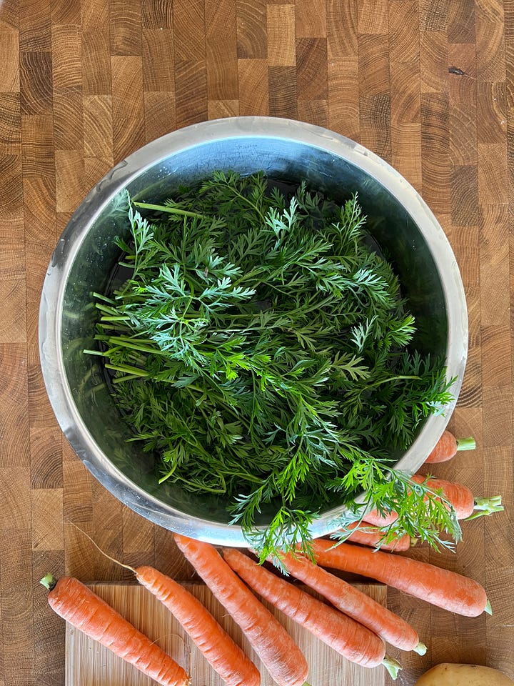 Las hojas de zanahoria