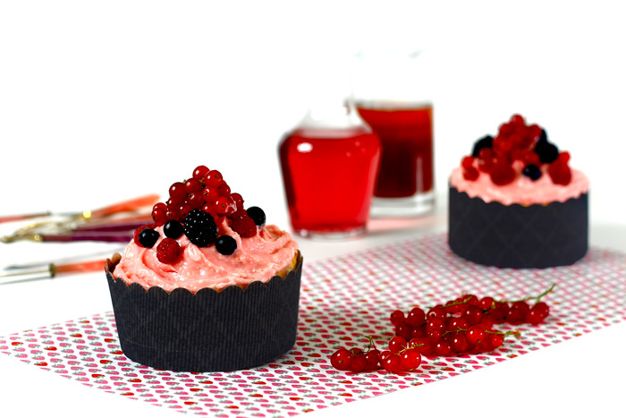 Como ya habrás imaginado por la foto, decorar cupcakes no es lo mío. Después de varias intentonas con la manga, me tuve que conformar con extender la crema con una espátula y que pareciera comestible. Los frutos rojos me ayudaron a que el resultado mejorara un poco, pero al pan pan y al vino vino. Si vuelvo a hacerlos, prometo comprar unas boquillas adecuadas y aprender a hacer florecitas y demás cucadas. ¿Te animas a hacer esta gamberrada dulce crockpotera?