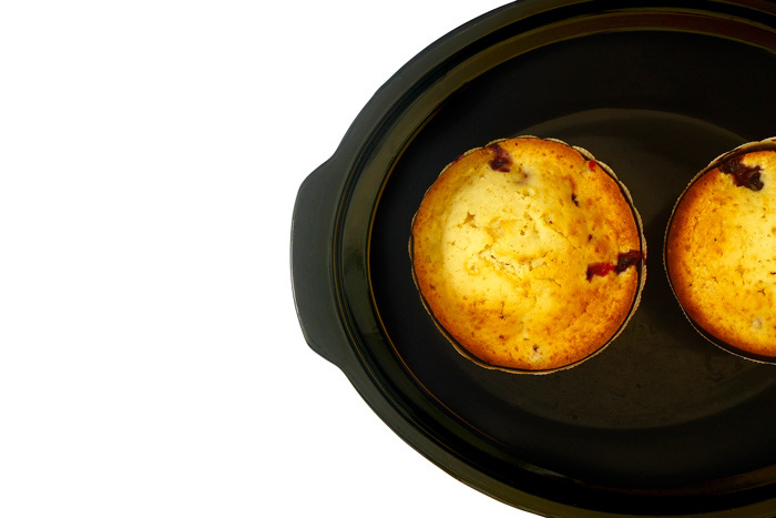 Vierte la masa en los moldes de cupcake gigante y colócalos en el slow cooker.