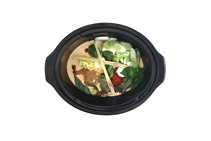 Hasta que empecé a cocinar con slow cooker nunca había hecho un curry decente. Había cocinado algo parecido al pollo al curry, inventándome la receta sobre la marcha y poniéndole curry en polvo, pero nada comparable a cocinar despacito un curry con su pasta, sus hojas de lima kaffir, su citronela y su leche de coco.