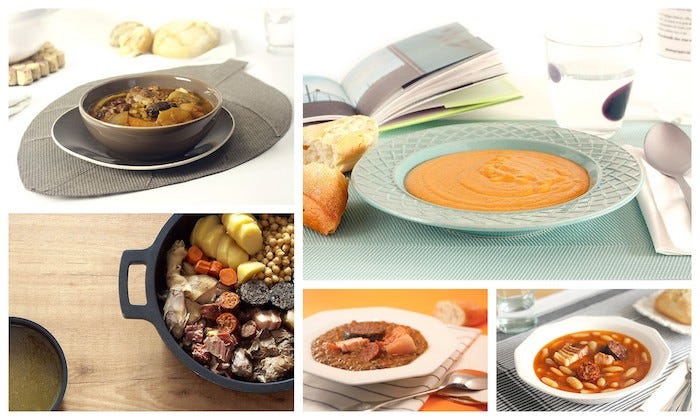 Botillo. Ni rastro de legumbre en este potaje de patatas y cerdo adobado, ahumado y semicurado, aunque hay zonas en las que le añaden alubias blancas. Si en tus visitas al mercado atisbas un botillo, échalo a la cesta y ponte a pelar patatas.