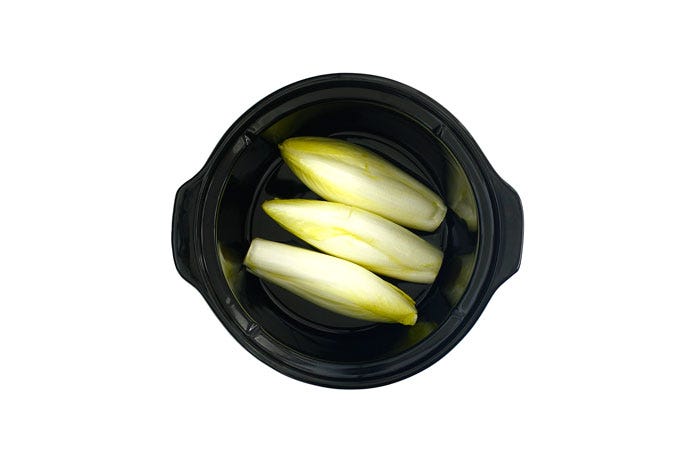 Coloca las endivias en el slow cooker de manera que dejen poco espacio libre para no desperdiciar aceite.