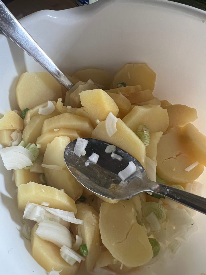 Sobre las ensaladas de patata solo puedo decir una cosa: siempre apetecen. Dame ensalada de patata en un día de calor o en uno de esos que llegas al mediodía con mucha hambre, y me harás una tía feliz, muy feliz.