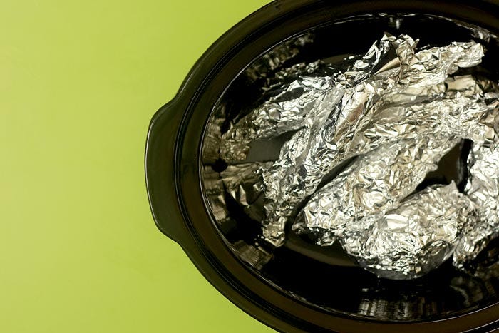 Envuelve los huevos en papel metálico de cocina y ponlos en la olla cuando lleve 3 horas de cocción.