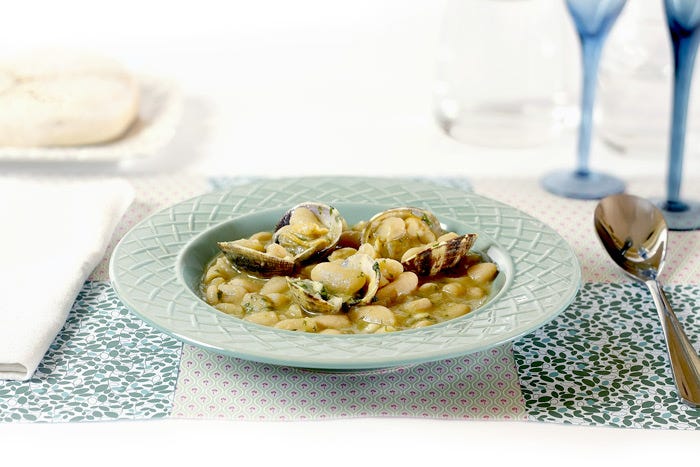 Mucho más ligera que la fabada o el pote asturiano, pero no menos placentera, esta receta es una de esas maravillas que salen de la combinación de las legumbres con otros ingredientes de la tierrina: verduras, mariscos, moluscos, pescados, aves, setas o carnes.