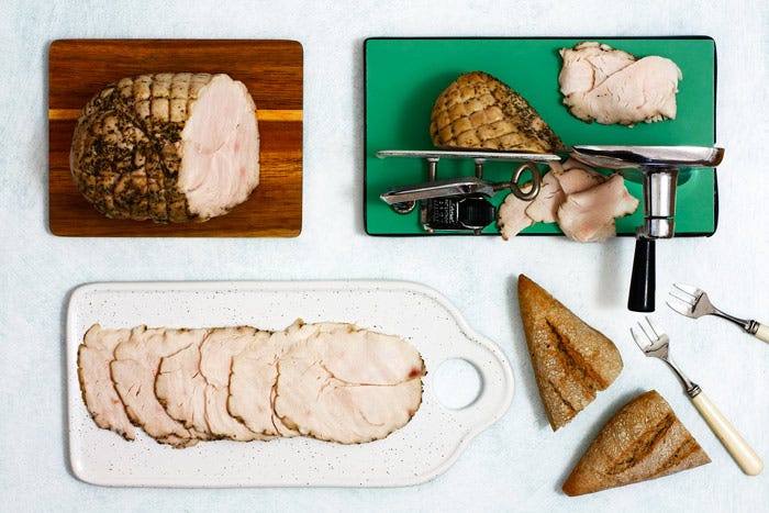 Envuelve la pechuga con film de cocina y deja enfriar durante un día antes de cortar en lonchas finas.