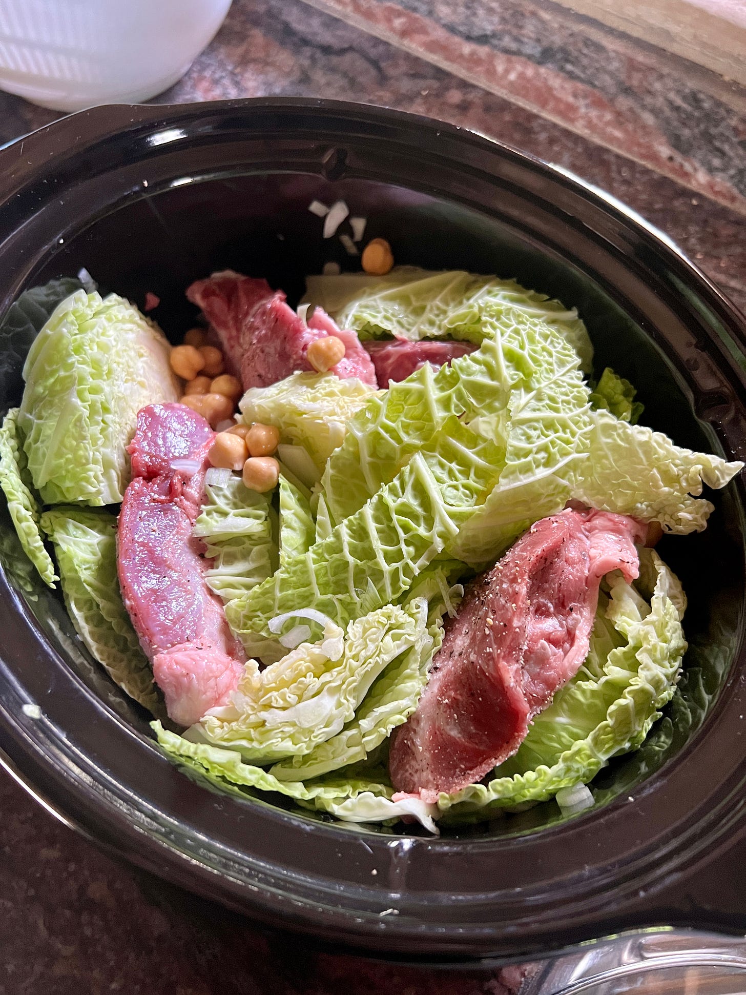 El slow cooker se inventó precisamente para hacer un guiso de legumbre: el cholent. Bendito sea Irving Naxon. Gracias a su privilegiado cerebro de inventor, podemos comer potajes maravillosos sin tener que estar con los ojos y las manos a las cazuelas.