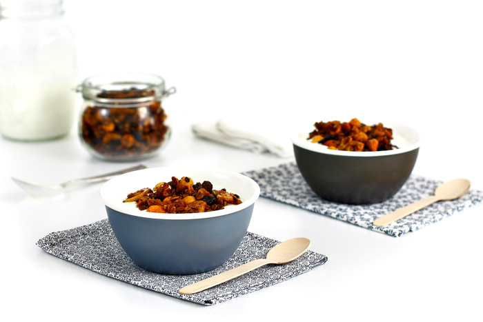 Con tanta tapa y tanta condensación parece mentira que en slow cooker se puedan hacer cosas tan crujientes como la granola. Se ha convertido en la reina del desayuno estos días, y el bote en el que la guardamos en casa está empezando a menguar peligrosamente. La tomamos con yogur, con leche, y tenemos que contenernos para no comerla a puñados, que hay que controlar un poco lo que una se mete entre pecho y espalda.