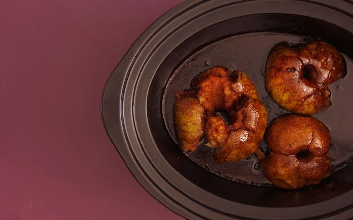 Esta receta de manzanas asadas al toffe en slow cooker es un postre económico y de emergencia para esos días en los que vienen tus cuñados y no sabes qué poner. Unas manzanas a la olla por la mañana y a la hora de comer las tendrás listas y templadas. Si ese día están sueltos, les verás rebañar y lamer la cuchara. Merece la pena.
