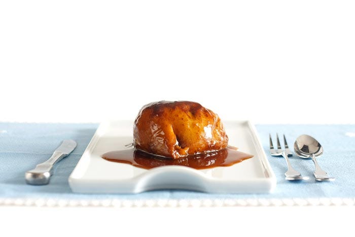 Deja enfriar y sirve en platos individuales cubriendo cada manzana con un poco de salsa.