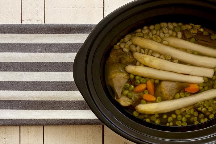 Te preguntarás si puedes hacer esta receta con preparado de menestra o verduras congeladas. La respuesta es: yo no lo haría, pero si quieres probar, ¿quién es Crockpotting para andar con dogmas?