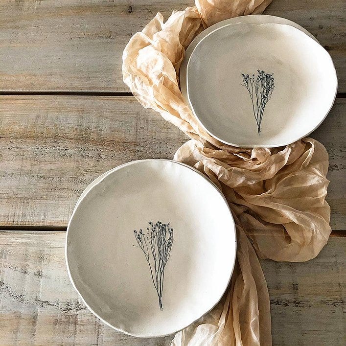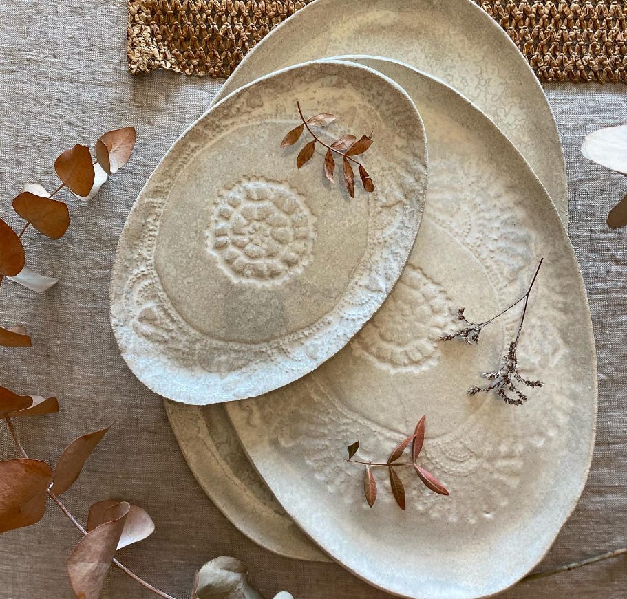 Eva Llamas cambió el marketing digital por la cerámica en 2016. Desde entonces crea vajillas bellísimas y sutiles en las que los motivos orgánicos, florales y los patrones de encaje tienen todo el espacio. No soy capaz de quedarme con un solo plato para mostrarte. Las colecciones Red Flowers, White Lace, Blue Filed Flower o Slow Nature me vuelven majareta y me provocan stendhalazos sin fin.