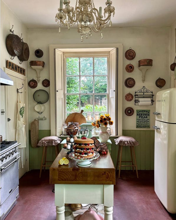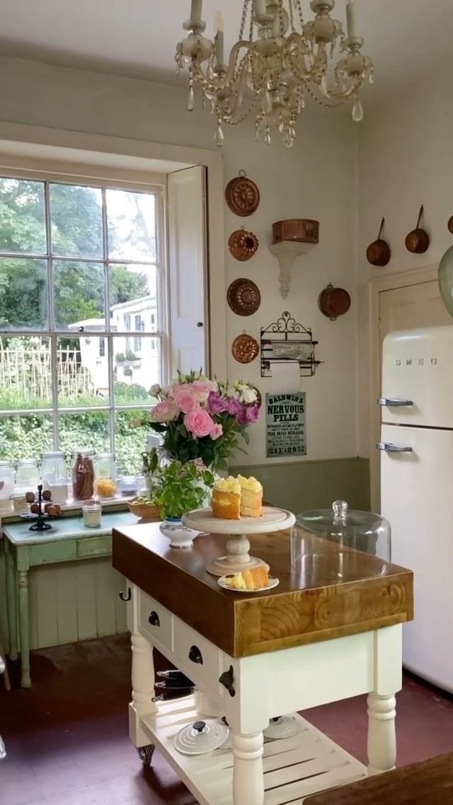 ¿Creías que se me había pasado por alto la lámpara de cristal? No hay cocina instagrameable campestre que se precie sin su lámpara incómoda de limpiar. La cocina de Paula no iba a ser la excepción.