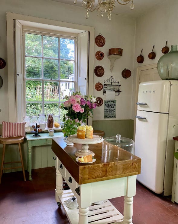 En la cocina de la escritora Paula Sutton siempre hay una tarta o una cesta de bollitos desafiando desde la mesa. Es una cocina pequeña que nos demuestra que, para crear un ambiente personal y campestre, no hace falta derrochar metros cuadrados.
