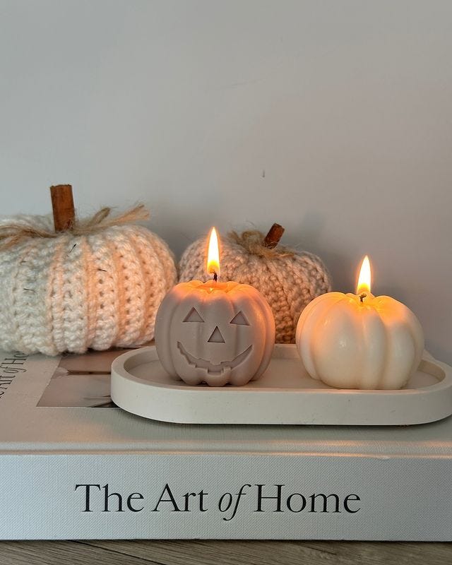 Que alguien le diga a athomewithholli que juntar velas y calabazas de lana en la misma repisa no es buena idea. Pero nos quedamos con ambas inspiraciones por separado.