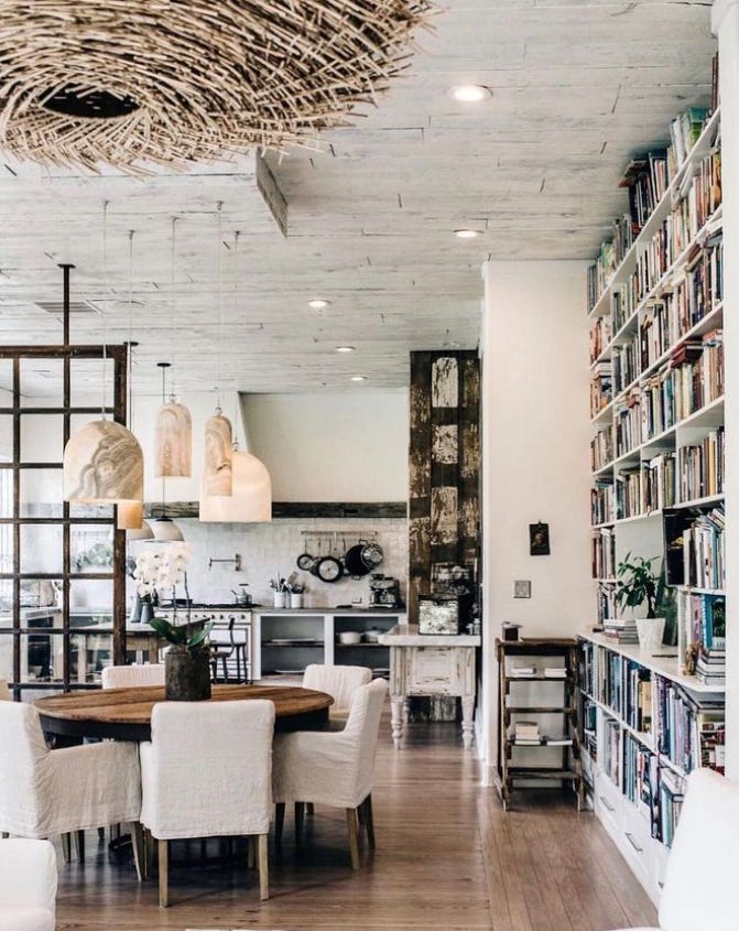Muebles de obra con paños amplios y estantes de madera maciza llenos de vajilla y menaje en color blanco. Toma pureza. Preside, como si fuera un DJ residente, una enorme cocina de gas. Adivina, sí, también es blanca.