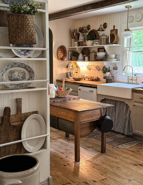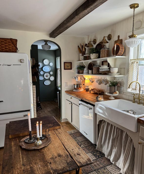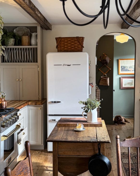 Una cocina llena de platos y espíritu vintage. Postres de otros tiempos. Una ranita que es amor, cucharas para servir helados y lo de las tradwives. Y recetas para toda la semana.