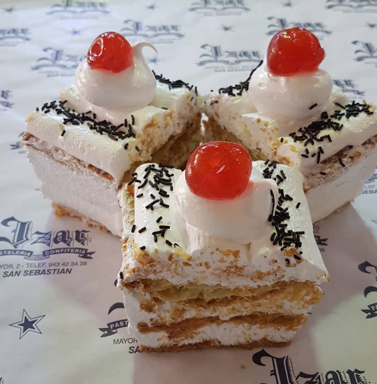 En Donosti, Izar era el templo de los milhojas de merengue. Cuando la tienda de la Parte Vieja cerró y quedó solo el servicio de obrador de Martutene, hubo un dramita en casa.