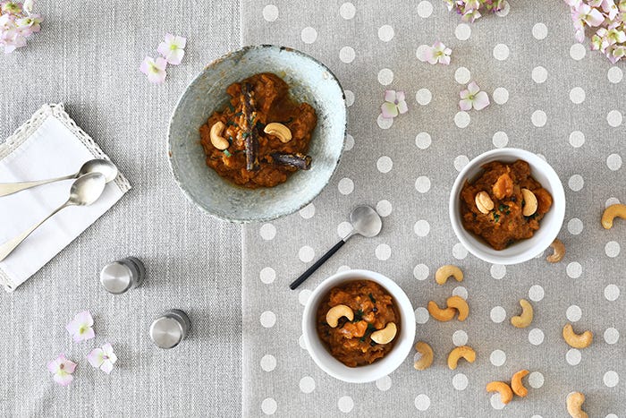 Esta semana nos hemos chupado los dedos con un chutney de calabaza y batata estupendo para acompañar y dar el toque agridulce a muchos platos. Con anarcardos salados y tostados para crujir y dar contraste.
