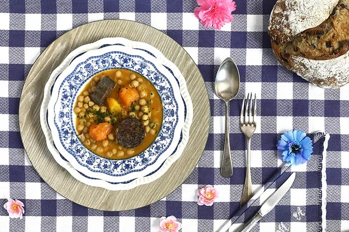 Hemos cocinado garbanzos con calabaza, batata y morcilla. Puro invierno en el plato. Un guiso garbancero contundente y sabroso para sacar a pasear la cuchara y comer con gusto.