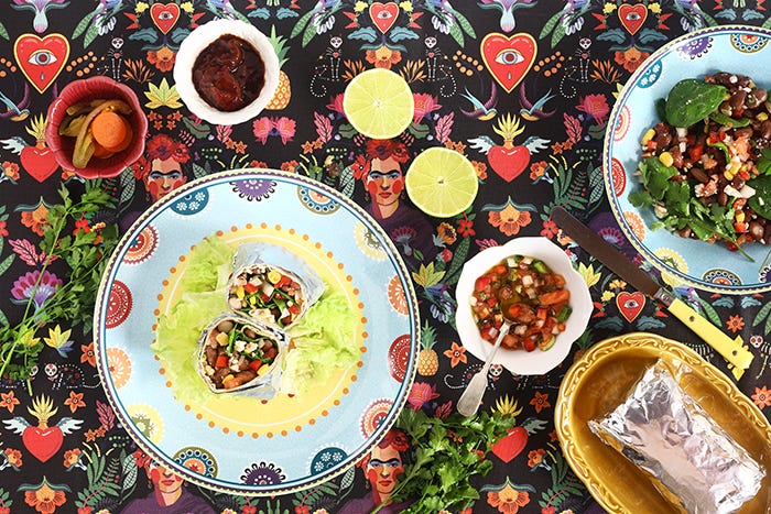 Esta semana nos hemos manchado los dedos comiendo burritos vegetales, que están riquísimos sin necesidad de utilizar carne. Con alubias rojas, queso blanco y vegetales, tenemos un plato muy entretenido para compartir con amigos.
